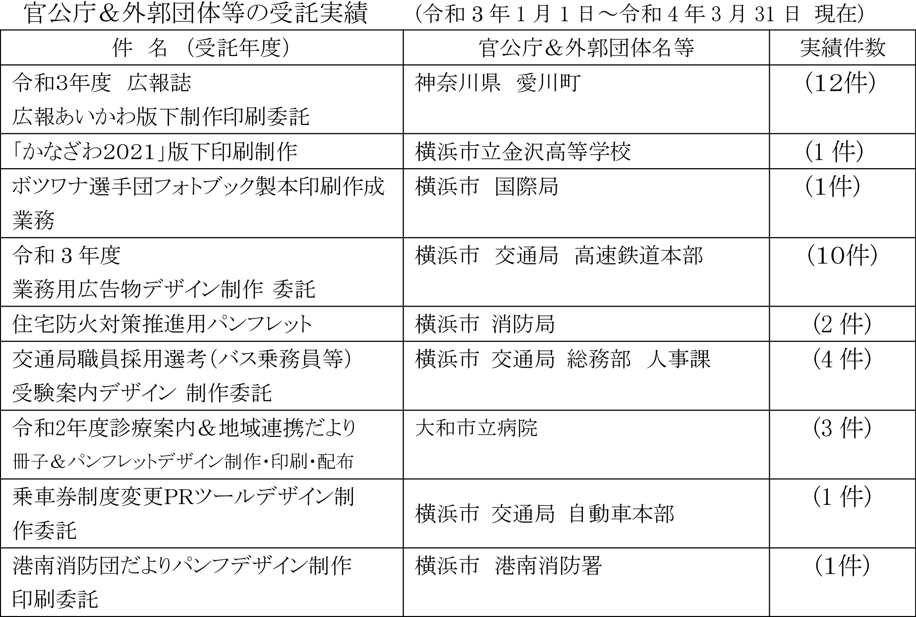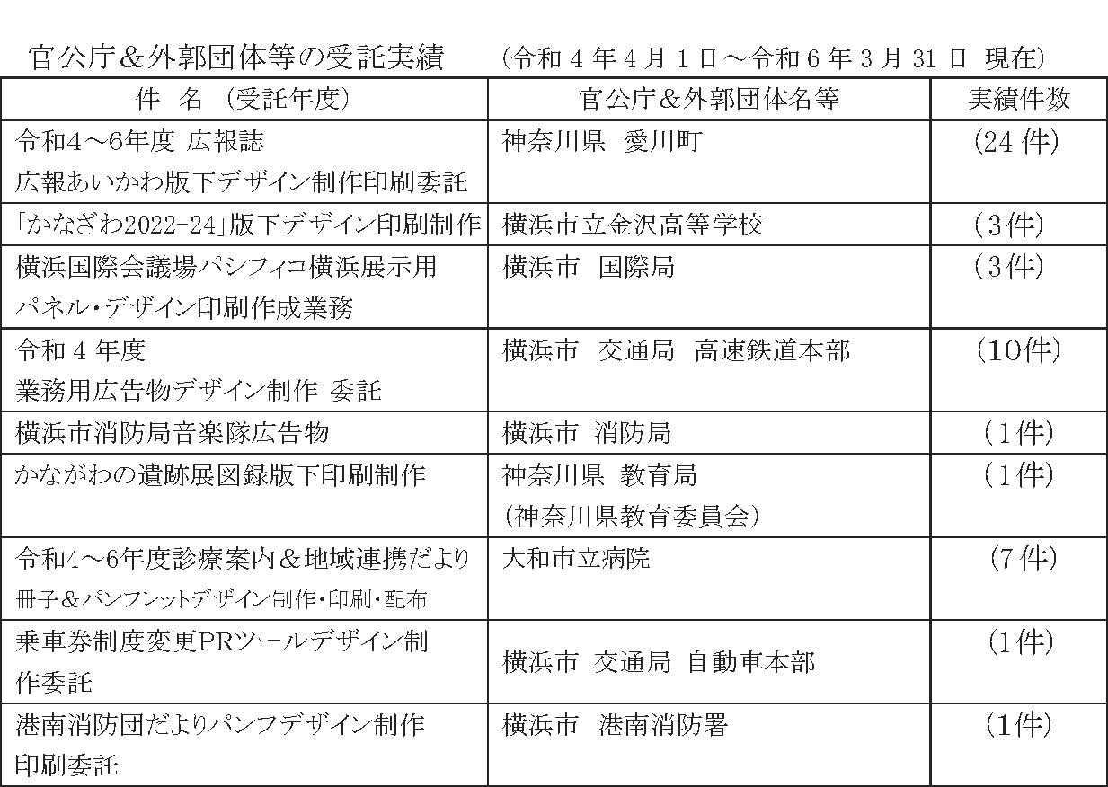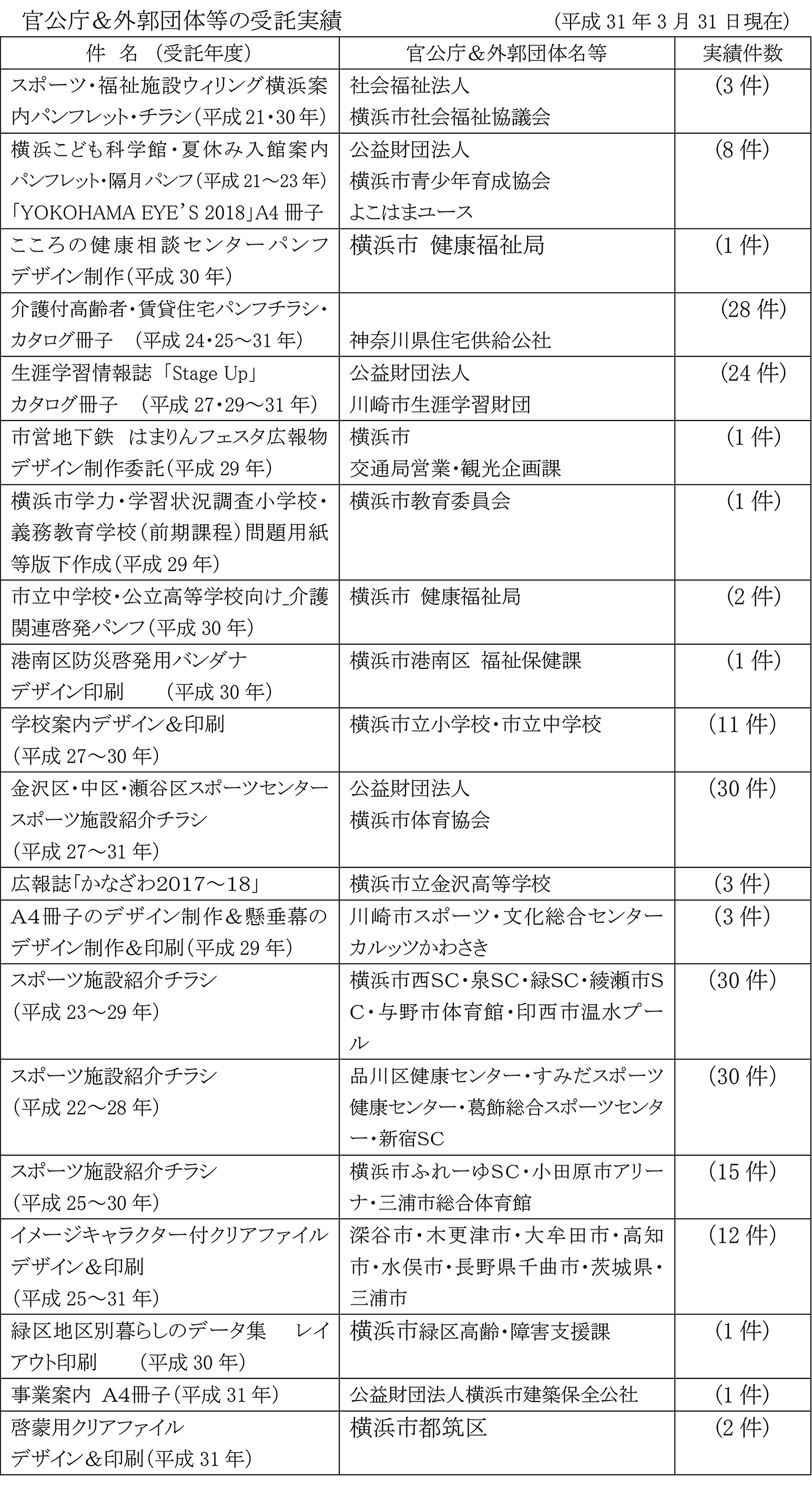 【2019.3.31】横浜市をはじめ官公庁&外郭団体の受託実績